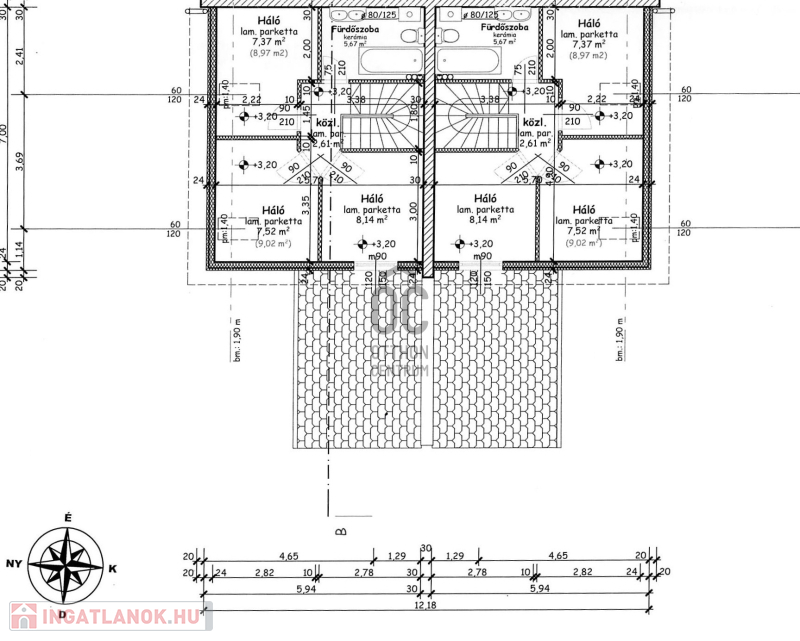 - nettó lakótér 76 m2 mely magában foglal 4 lakószobát, 2 fürdőszobát és nappalit külön