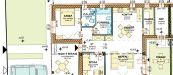 - az ikerházak egymás mögé épülnek, kazánházzal, gépészeti helyiséggel elválasztva a 2 épületet