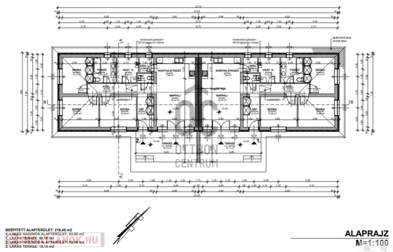 Az ingatlanokhoz 300-400 nm-es önálló telekrész tartozik, az ikerházak nettó alapterülete