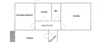 - 1 egész szobából, 1 félszobából, előszobából, konyhából/étkezőből, fürdőszobából, valamint WC-ből áll.