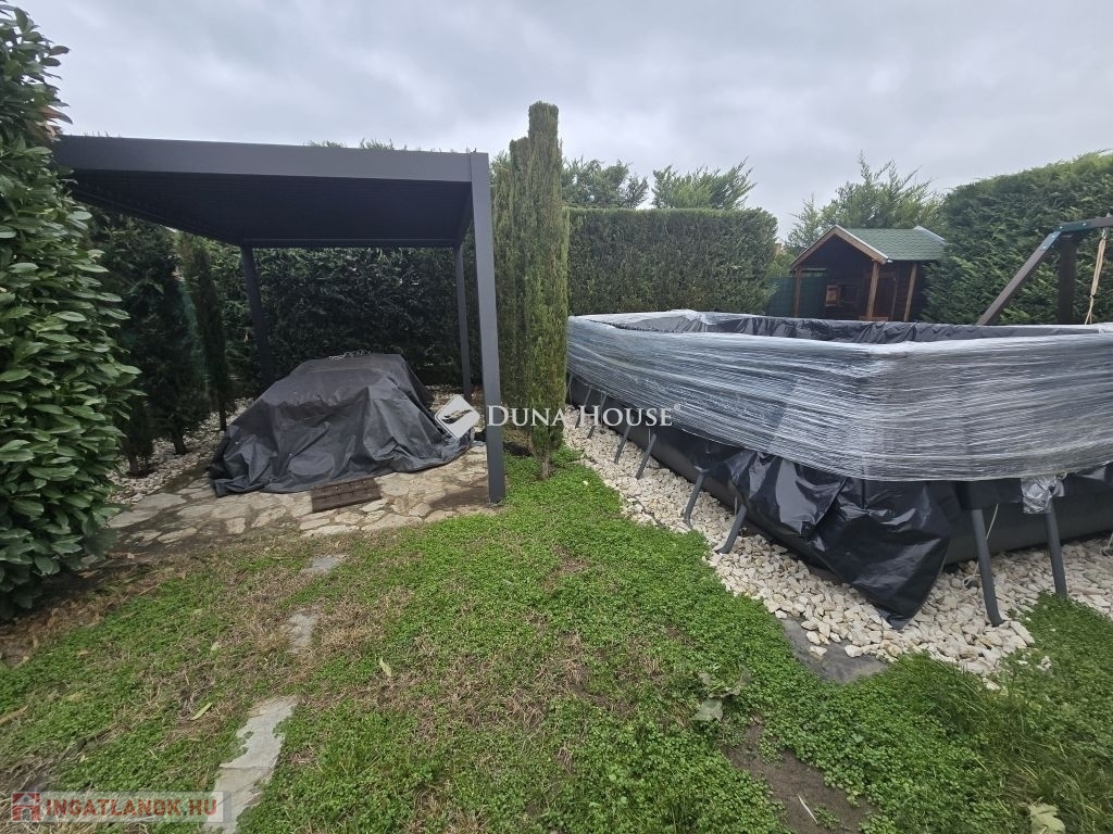 A telek teljes mértékben leválasztásra került, ahol egy 2.86nm-es tároló áll rendelkezésre, illetve egy medence amelynek mérete 6mx275cm. Az ingatlan új építésű ingatlanok között található csendes utcában, autóval iskolától, óvodától, bölcsődétől 5 percre.