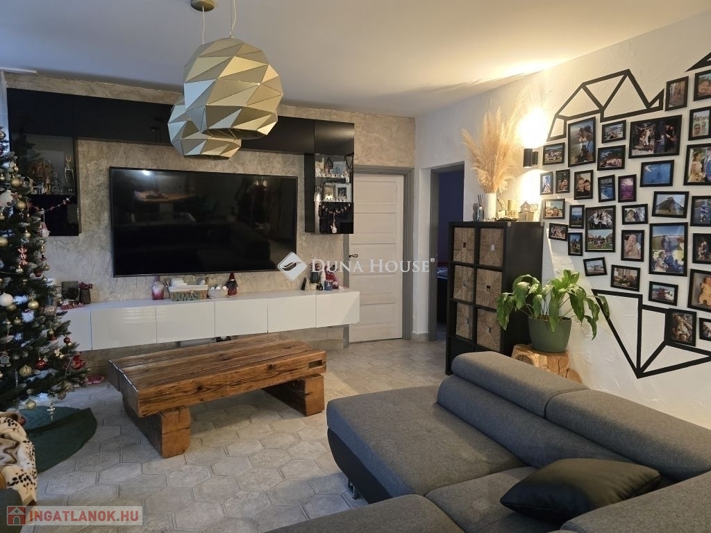 A 94 nm-es ingatlan téglából épült, telek mérete 804 nm, 15 cm-es külső -és födém szigeteléssel, betoncserép fedéssel.