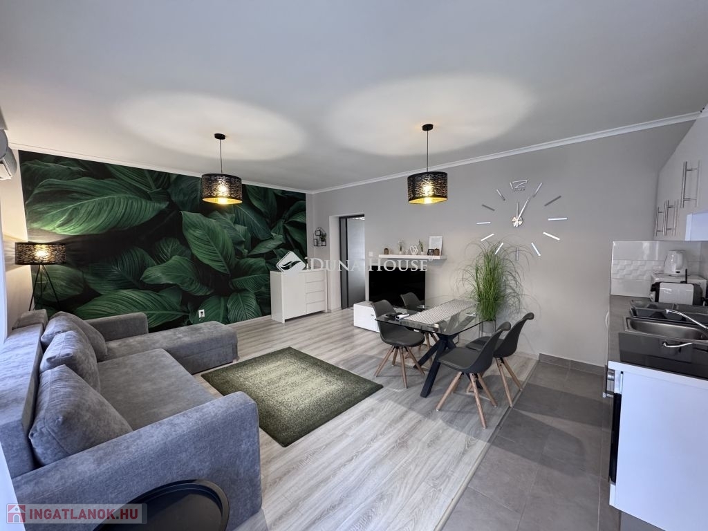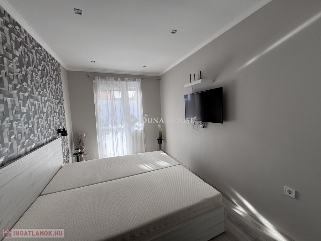 Harkány csendes, rendezett részén, egy háromlakásos társasház földszintjén kínálom megvételre ezt a teljes körűen felújított, kertkapcsolatos lakást, teljes berendezéssel.Az ingatlan minden részlete gondosan megtervezett és karbantartott, a felújítás után gyakorlatilag új állapotban várja leendő tulajdonosát. A lakás fűtése energiatakarékos klímával megoldott, a nyílászárókra elektromos redőnyök és szúnyoghálók kerültek. A ház külső homlokzata 5 cm szigeteléssel, a tető pedig 15 cm kőzetgyapottal ellátott, ami kiváló hőszigetelést biztosít.A lakás teljes bútorzattal és felszereléssel kerül átadásra: a TV, bútorok, háztartási eszközök és minden berendezési tárgy a vételár részét képezi, így az ingatlan akár azonnal költözhető vagy kiadható.A ház előtt egy, akár két autó számára is kényelmes parkolási lehetőség biztosított.Kiváló választás állandó lakhatásra, nyaralónak vagy befektetési célra egyaránt.