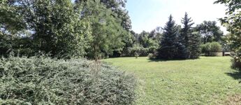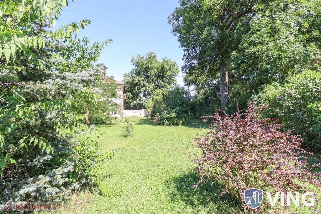 Az ingatlan területén erdős környezetben számtalan zöld növényzet, ős fák, örökzöld található, a telek körbekerített, 2 autó bejáró és 1 személyi bejáró is biztosított.