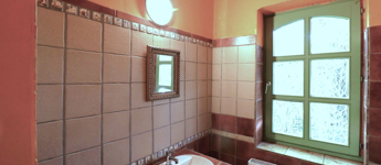 A folyosó, körfolyosó, szobák, fürdőszoba falai, burkolatok még felújításra várnak.