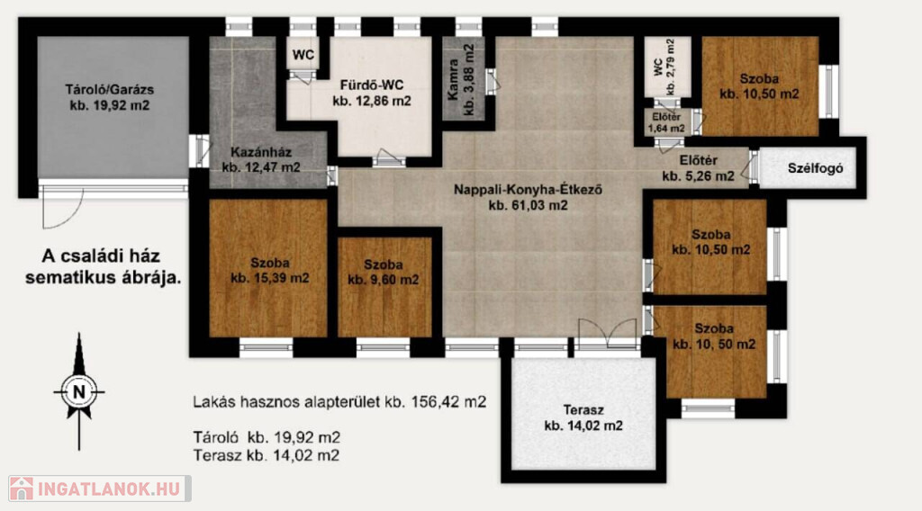 Az ingatlan alkalmas nagyobb létszámú család életvitelszerű tartózkodására, vagy akár üzleti célú felhasználásra is.