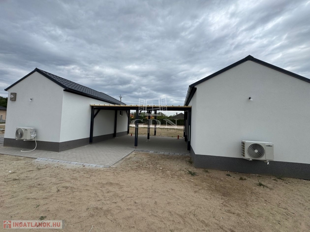 Helvécián belterületi aszfaltos utcában, 340 nm telken, új építésű könnyűszerkezetes építési móddal, 49 nm, amerikai konyhás nappali + 1 szobás, klímás ikerház, fedett gépkocsibeállóval eladó. Ideális választás idősebb korosztálynak, vagy fiataloknak, akik nem szeretnének nagy kertet gondozni. Kivitelezésben szerződött partnerünk a mai kornak és igényeknek megfelelő, energia hatékony építő anyagokkal építi fel, vállalt határidőre otthonát. A fotók referencia munkáról készültek.