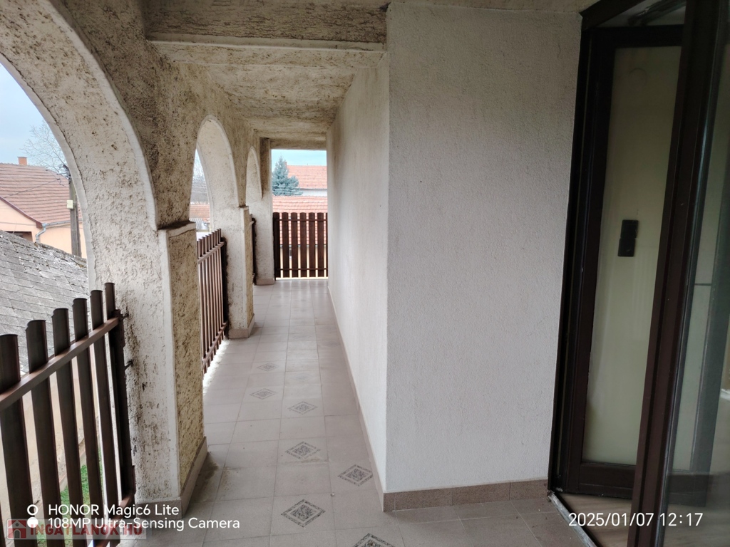 A házba két bejárat, a hátsó bejáratnál 8 m²-es terasz lett kialakitva.