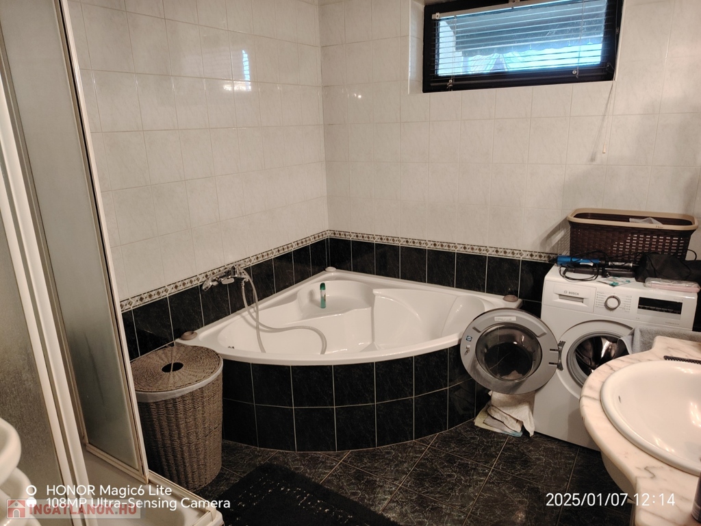 A ház teljesen alápincézett (110m²), melyben egy garázs (15 m²) is kialakitva van egy szgk. részére elektromos ajtóval.