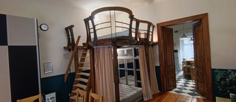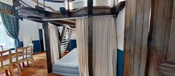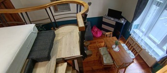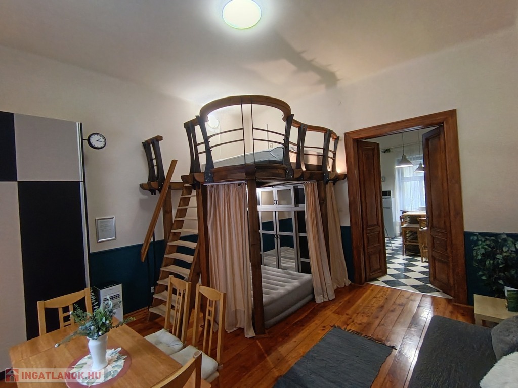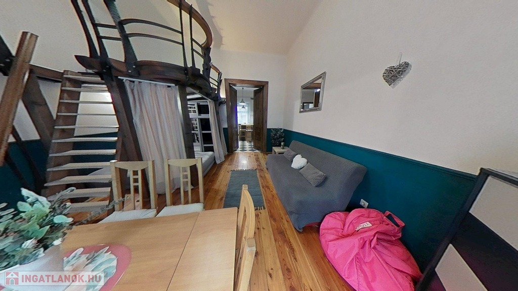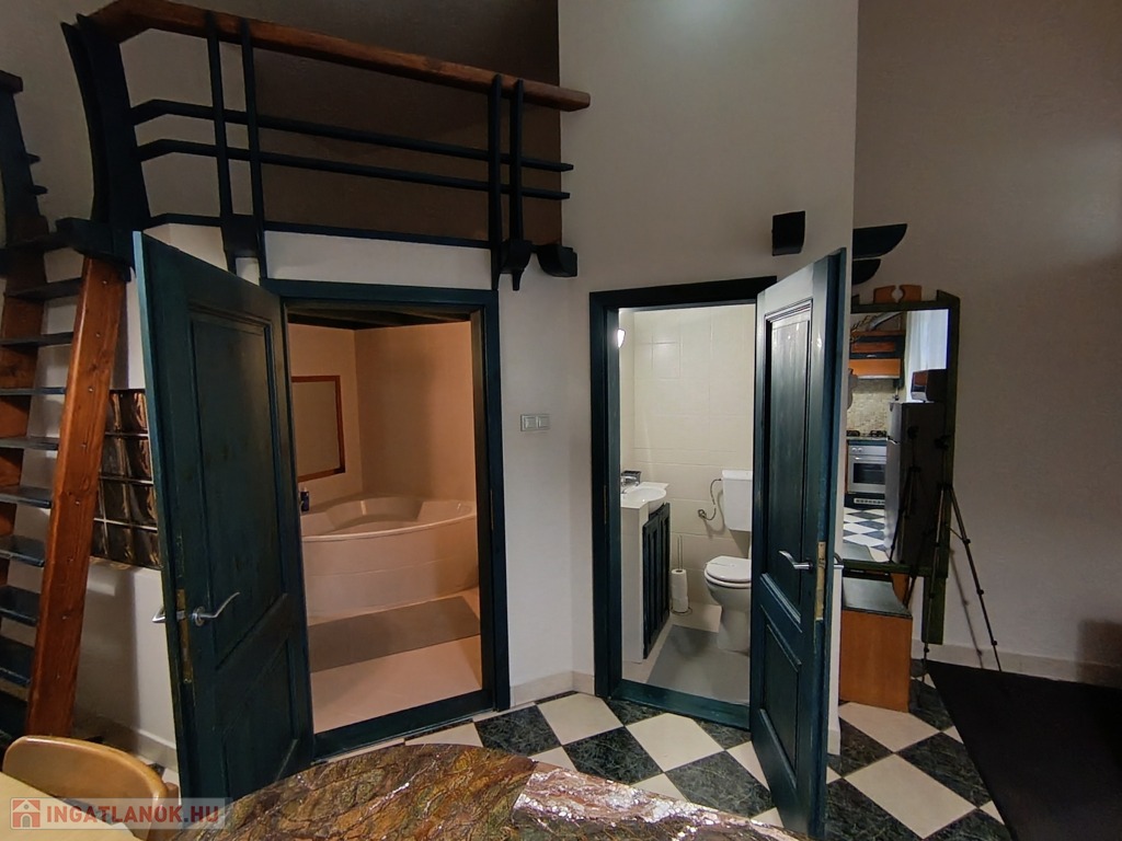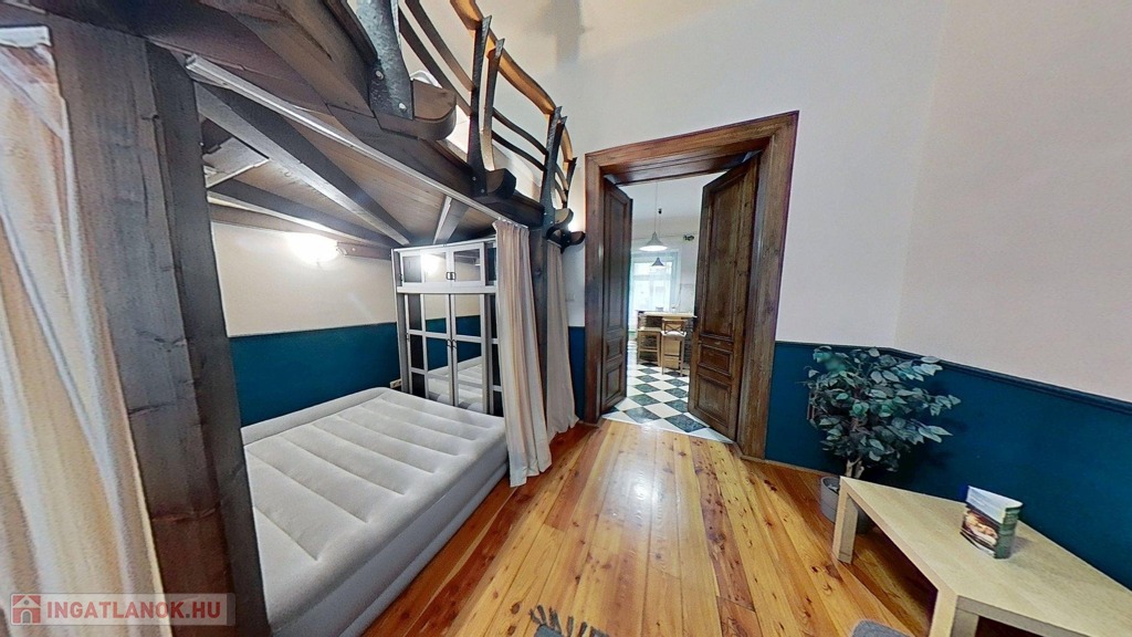 Két galéria is beépítésre került, a teljes szoba belmagasság 3.68 cm, a galériák 1. 6 m magasak,