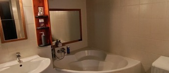 A fürdőszobában tágas sarokkádban fürödhetünk,a wc külön helyiségben kézmosóval is fel van