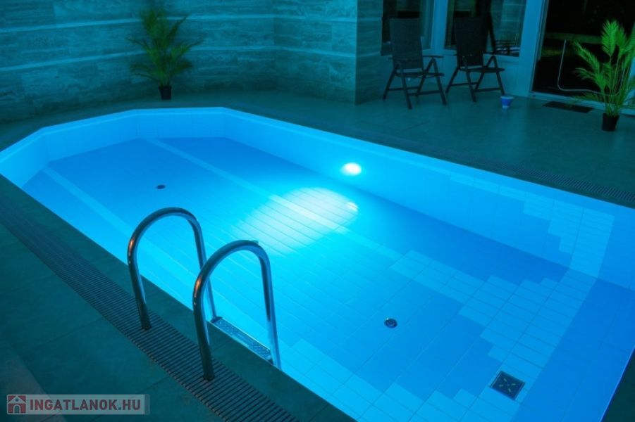 - fűthető medence, Változtatható fényű led világítással, mérete: 6.5 X+3X 1,4 Méter