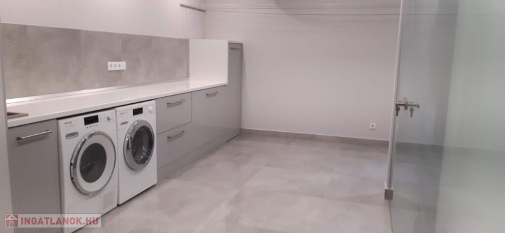 - mosó és ipari szárítóval felszerelt helyiség,