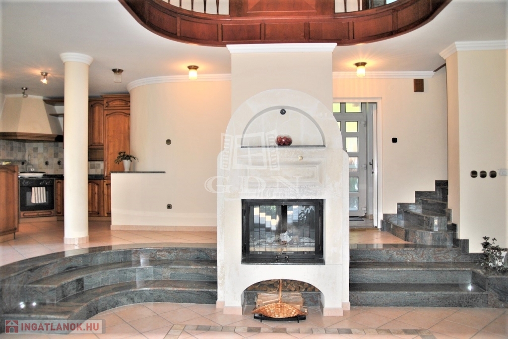 Műszaki tartalom ( részlet ): 40 cm vastag tégla + valódi klinkertégla burkolat, bramac betoncserép, 25 cm üveggyapot + fólia hőszigetelés, kerámia, gránit, parketta burkolatok, egyedi fa falburkolat, kamerás - távfelügyelethez bekötött biztonsági videórendszer, FŰTHETŐ garázs LEHAJTÓ, medence ( fűthető, víztisztító rendszerrel, ellenáramoltatóval egyaránt felszerelt ), padló és radiátor fűtés, központi porszívó, kandalló, hang-, és hőszigetelt műanyag nyílászárók, biztonsági fólia, szúnyoghálók, elektromos redőny, reluxa, beépített részben gépesített konyha mindkét lakásban, beépített szekrények, szemet gyönyörködtető csillárok, stb.