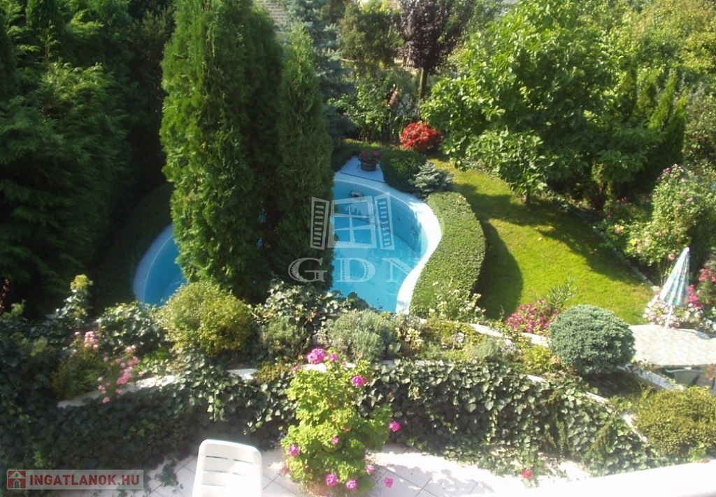 II. kerületben, Pesthidegkút-Ófalu részén domboldalon, kertvárosi csendes környezetben, igényes ingatlanok szomszédságában, nettó 275 m2 lakóterületű, K-D-NY tájolású, jelenleg 2 GENERÁCIÓS, 5 + 1 szobás, MEDENCÉS, jó állapotú ikerházat, saját kizárólagos 580 m2 nagyon szépen parkosított telken kínálunk eladásra.