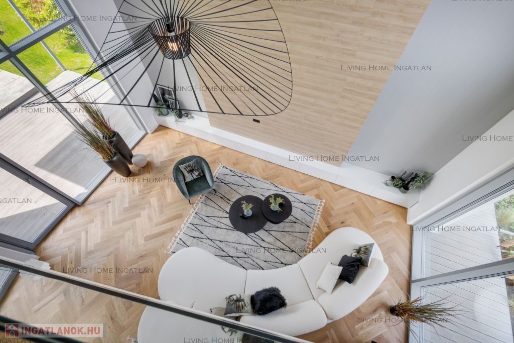 - Living room with gallery with a ceiling height of 6.5 metres.