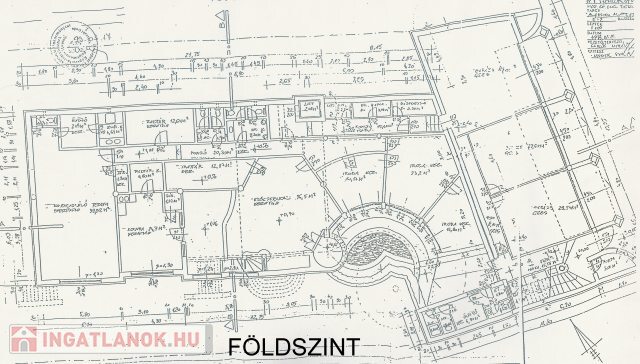 * földszint: Örhelyiség, 2 egyállásos és 1 dupla garázs, folyosó, technikai helyiségek, öltöző, mosdó, tanácsterem, 3 szoba, konyha, WC, kondi terem.