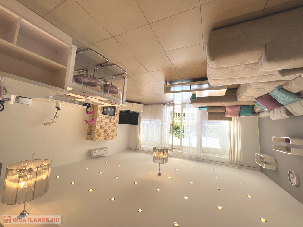 - földszinten 74 nm-es, terasz- és kertkapcsolatos, amerikai konyhás nappali + 1 szoba, fürdőszoba;