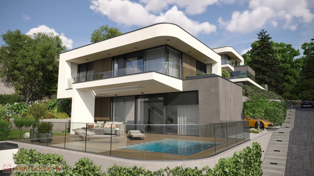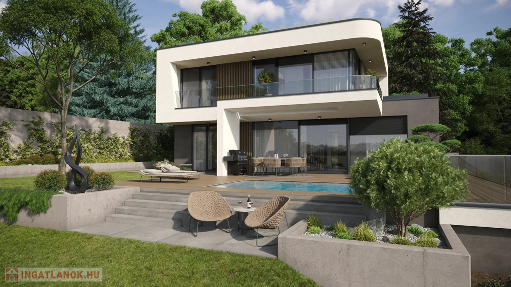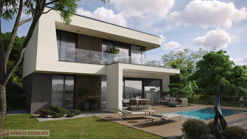 Nettó hasznos alapterülete– 193 m2 + 44 m2 terasz + különálló medence + 520 m2 kizárólagos használatú privát kertrész.