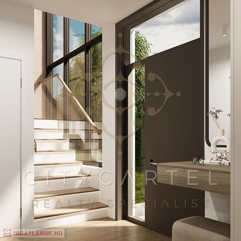 A szemet vonzó, design külső megjelenés a belső terekben is visszaköszön: kiemelt belsőépítészeti megoldások, prémium minőségi fa anyagok, a természet színeivel megépített belső terek, luxus kivitelben elkészült fürdők, konyha. Beépített lépcsőmegvilágítás, hangulat világítás megoldások.