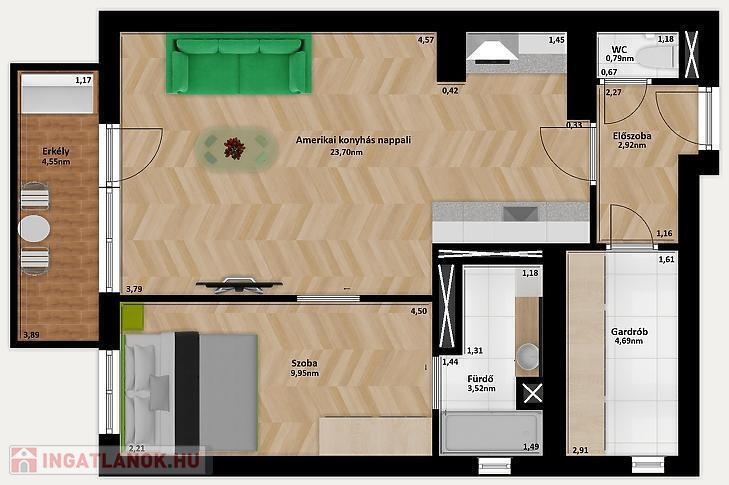 A lakás 2 havi kaució és az első havi bérleti díj megfizetésével azonnal költözhető.