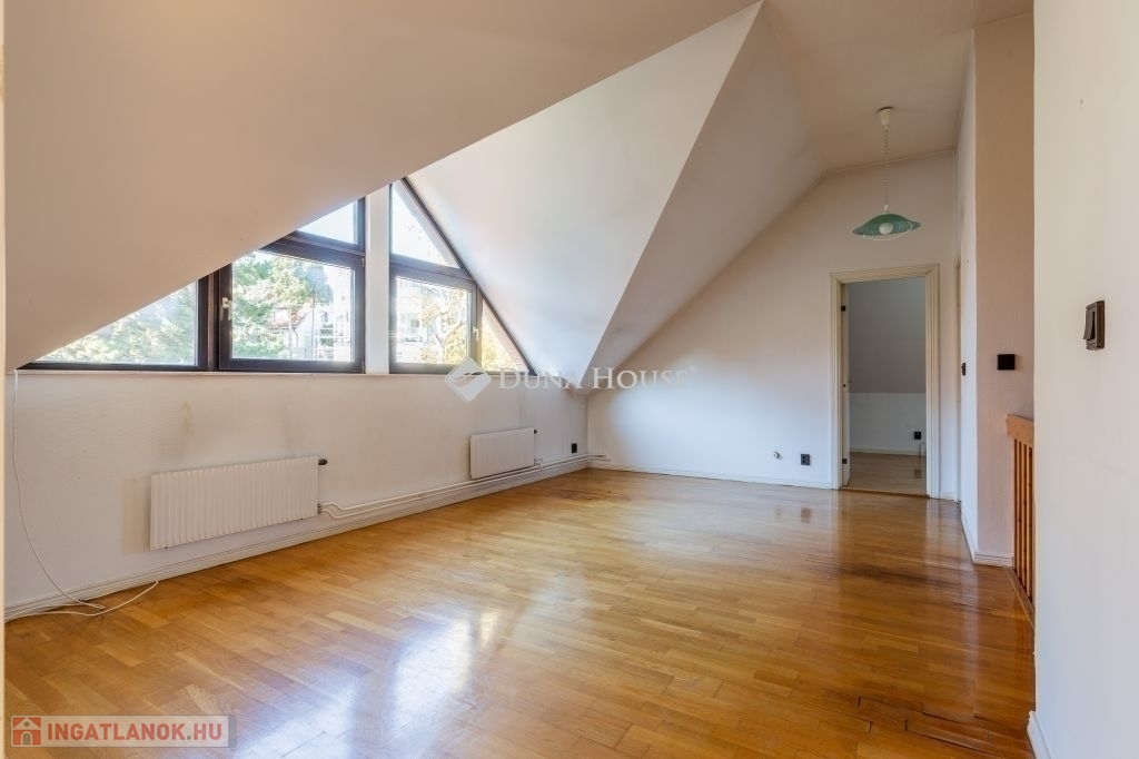 ***ELADÓ IKERHÁZ BUDA EGYIK LEGNÍVÓSABB UTCÁJÁBAN!!!***A ház egy olyan utcában helyezkedik el, ahol ritkán kerül eladósorba ingatlan, így ha Ön egy olyan helyet keres, ami nem csak lakhatásra, de befektetésre is remekül alkalmas, akkor megtalálta azt. Az épület mérete és elhelyezkedése számos lehetőséget rejt magában, legyen szó akár átalakításról, bővítésről vagy egyéni stílusának megfelelő felújításról.Az 1992-ben, magas minőségben épült 3 szintes, jelenleg 2 nappalis+3 hálószobás (de könnyedén kialakítható további két hálószoba is) ház egy lakóparkban található, melynek hatalmas, közös használatú, fákkal körbeölelt zöld kertje van, privát játszótérrel.Az alagsori részen található a tágas garázs, több tároló helyiség, egy hobby szoba és a mosókonyha.A földszinten a nagy méretű nappali és szintén tágas konyha, egy hálószoba és egy fürdőszoba kapott helyet, illetve a nappaliból kilépve itt található a hangulatos, fedett terasz, melyről közvetlen lejárat van a lakópark kertjébe.Az emeleten egy óriási gyerek nappali, két hálószoba, egy fürdőszoba és egy gardrobe található.Kiváló infrastruktúra jellemzi: iskolák, óvodák, bevásárlási lehetőség, tömegközlekedés pár percre találhatóak.Az ingatlan tehermentes, 1/1-es tulajdonban van, azonnal költözhető.
