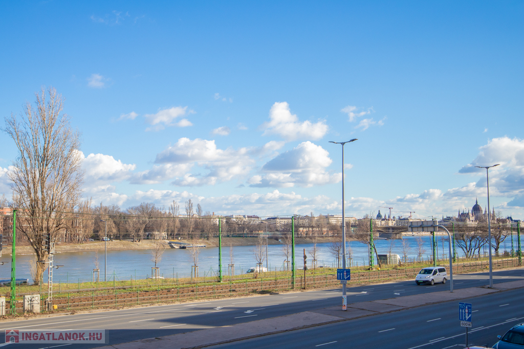 Eladó a II. kerületben közvetlenül a Duna-parton a Zsigmond térnél egy jó állapotú, liftes társasházban lévő I. emeleti, 59nm-es, 2 szoba + étkező konyhás, jó állapotú, világos, erkélyes lakás szép kilátással a Duna és a Margit-sziget felé.