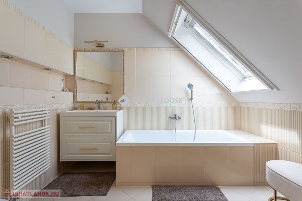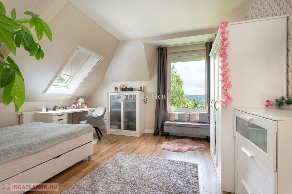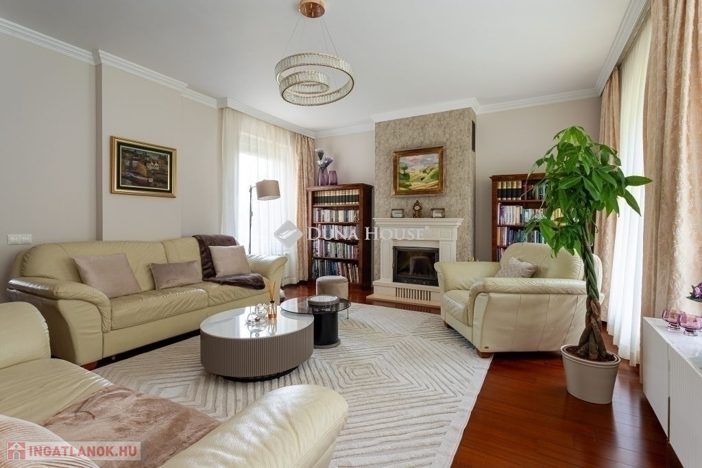 Exkluzív családi otthon Budaligeten panorámával és prémium minőséggelBudaliget egyik legnívósabb részén, a francia iskola közelében kínálunk eladásra egy páratlan adottságokkal rendelkező, minden igényt kielégítő családi házat.Az ingatlan csendes, zöldövezeti környezetben, erdő mellett helyezkedik el, ahonnan lenyűgöző panoráma nyílik a környező hegyekre. A gondosan megtervezett elrendezésnek és a hatalmas üvegfelületeknek köszönhetően a ház minden szeglete világos, tágas és otthonos.Főbb jellemzők:- nappali + amerikai konyha közvetlen kertkapcsolattal- 6 hálószoba, 4 fürdőszoba, több gardrób- vendégszoba, dolgozó vagy külön lakrész kialakításának lehetősége- alsó szint külön bejárattal ideális vállalkozásra vagy kétgenerációs megoldásra- minőségi burkolatok és prémium anyagok mindenholExtra felszereltség:- kondenzációs gázkazán, kandalló, Daikin klíma- elektromos redőny, szúnyogháló, biztonsági bejárati ajtók- riasztórendszer, automata garázskapu és kertkapu- fedett és nyitott kocsibeálló, garázs- gondozott kert automata öntözőrendszerrelEz az ingatlan tökéletes választás mindazoknak, akik szeretnének egy exkluzív, mégis nyugodt környezetben élni, miközben élvezhetik Budapest egyik legszebb városrészének minden előnyét.