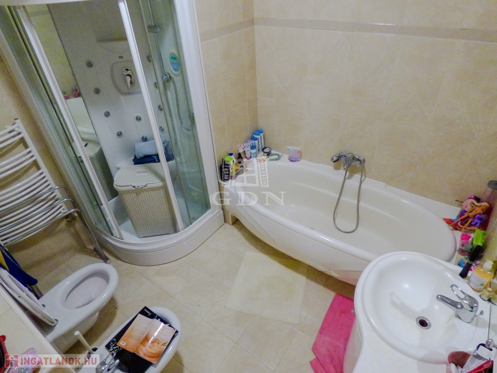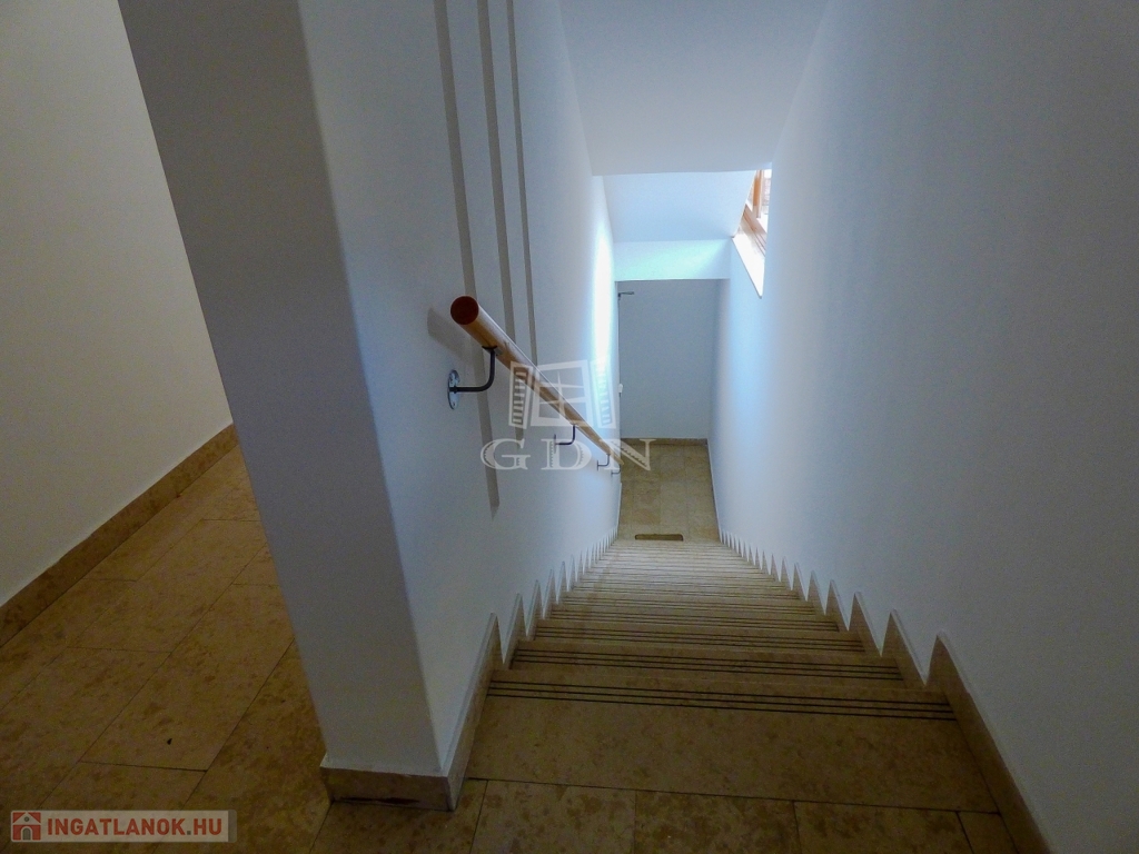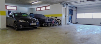 Az ingatlanhoz tartozik egy dupla teremgarázs beálló a 0. szinten és egy tároló (4 nm) közvetlenül a parkolóhelyek mellett, mely kötelezően megvásárolandó 20 M ft értékben.