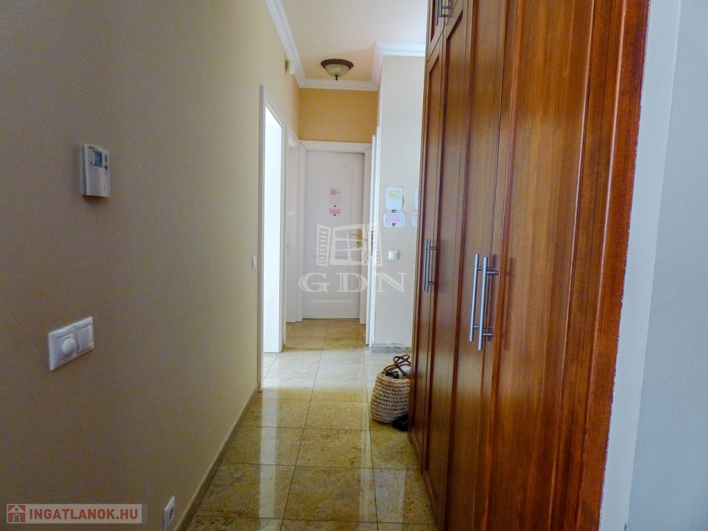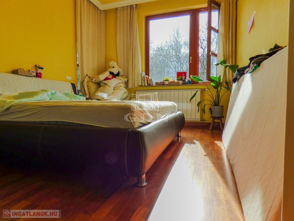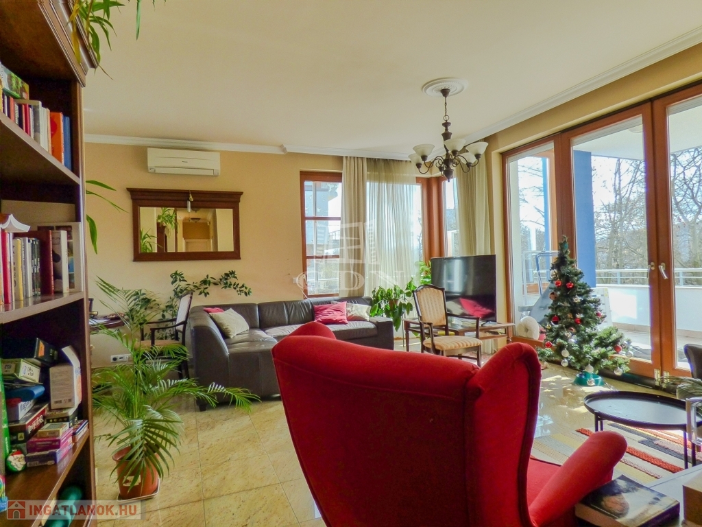 II. kerületben, az EURODOMB LAKÓPARKBAN, 2003-ban épült, rendezett, karbantartott, portaszolgálatos (0-24), kamerás, liftes, szigetelt, tégla építésű társasházban, I. emeleti, 94 nm-es, 3 szobás, jó állapotú, gáz cirkó fűtésű (padlófűtés), hűtő - fűtő klímával felszerelt, fa thermo nyílászárós, Dél - Nyugati tájolású, rendkívül világos, csendes, hegyekre néző, NAGY ERKÉLYES (25 nm), rugalmasan birtokba vehető, TEHERMENTES lakás eladó.