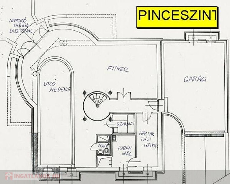 * pince 139 m2: 139nm: medencetér 107 (medi3x10), szauna, WC-zuhany, kazánház, tároló.; belmagasság: 2.75 m