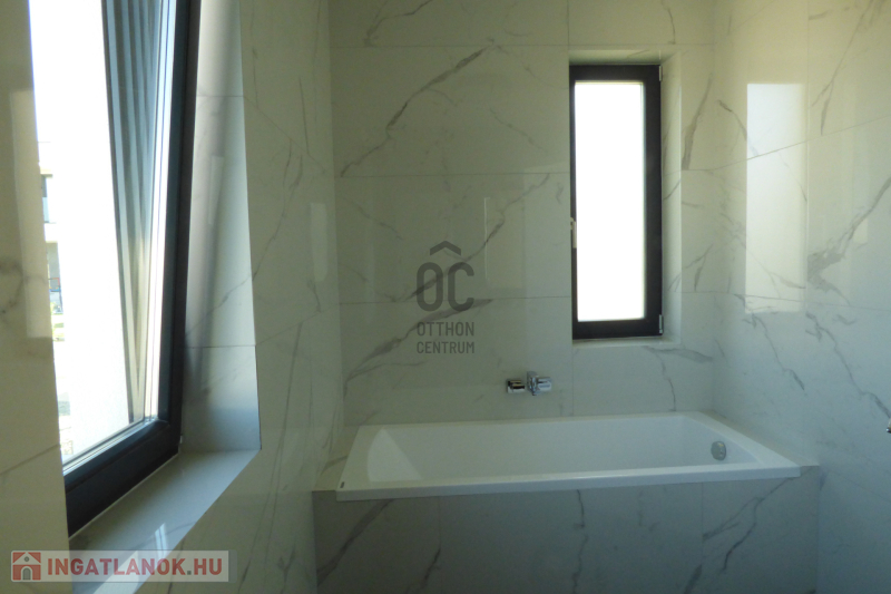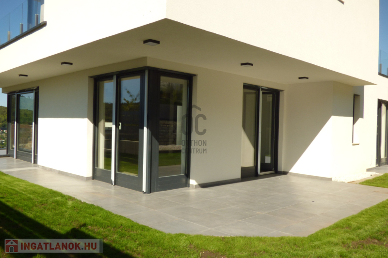 A házhoz tartozik 55 nm burkolt terasz, valamint 27 nm zöldtetős terasz.