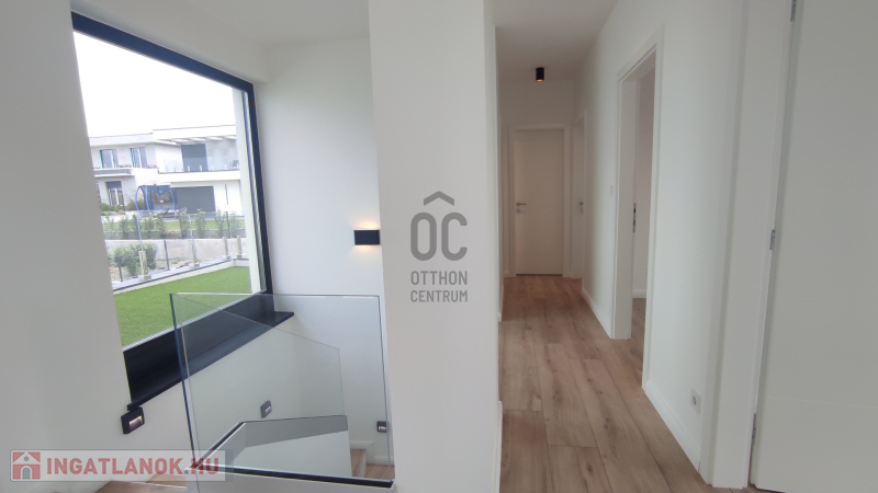Az emeleten három hálószoba, gardrób és nagy fürdőszoba valamint egy óriási panorámaterasz található.