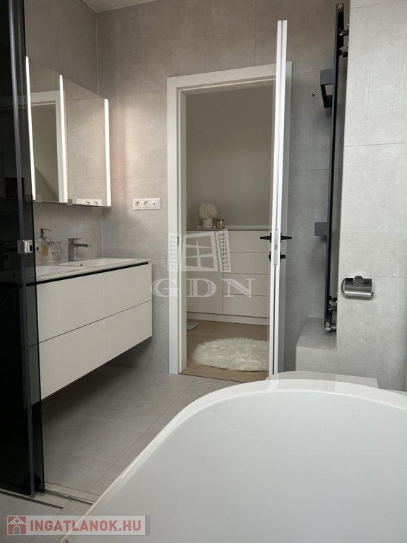 3 szintes, pincében, szauna, fürdő szoba, úszómedence, mosókonyha, 2 nagy tároló, beépített gardrób szekrények.
