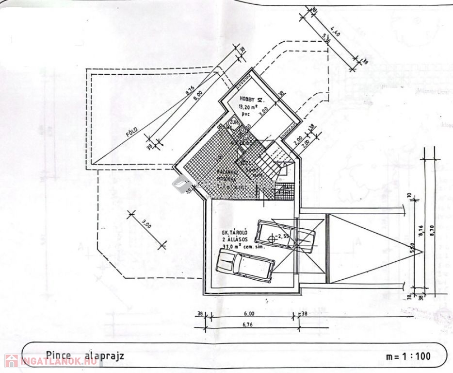 Pinceszinten két állásos garázs, szauna helyiség, kazánhelyiség új Vaillant gázkazánnal.