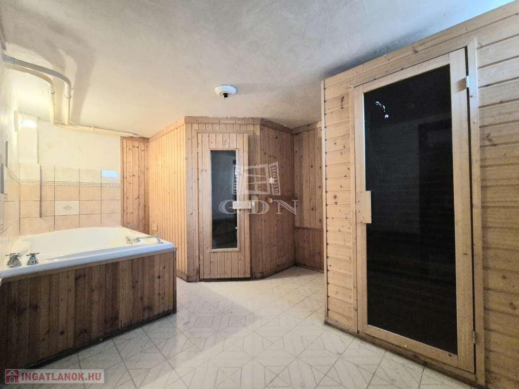 A szuterén szinten a több állásos garázs mellett, wellness helyiség ( infra, finn szauna, masszázs kád), kondenzációs gázkazánnal szerelt gépház került kialakításra.
