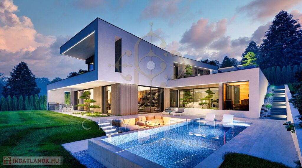 A III. kerületben, az Aranyhegy egyik legszebb részén kínáljuk megvételre ezt a kivételes adottságokkal rendelkező, modern, egyedi tervezésű villaépületet, amely örökpanorámás kilátással tárul elénk: a város látképe és Péterhegy fenyvesei egyaránt lenyűgöző hátteret biztosítanak az otthon mindennapjaihoz.