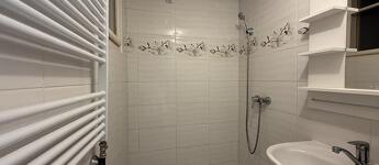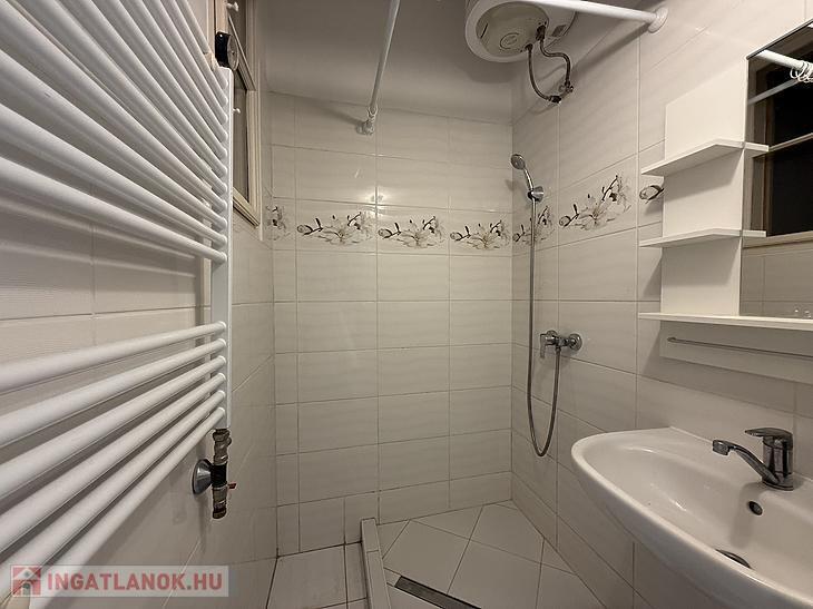 A fürdőszobában beépített zuhany van. Wc külön helyiségben.