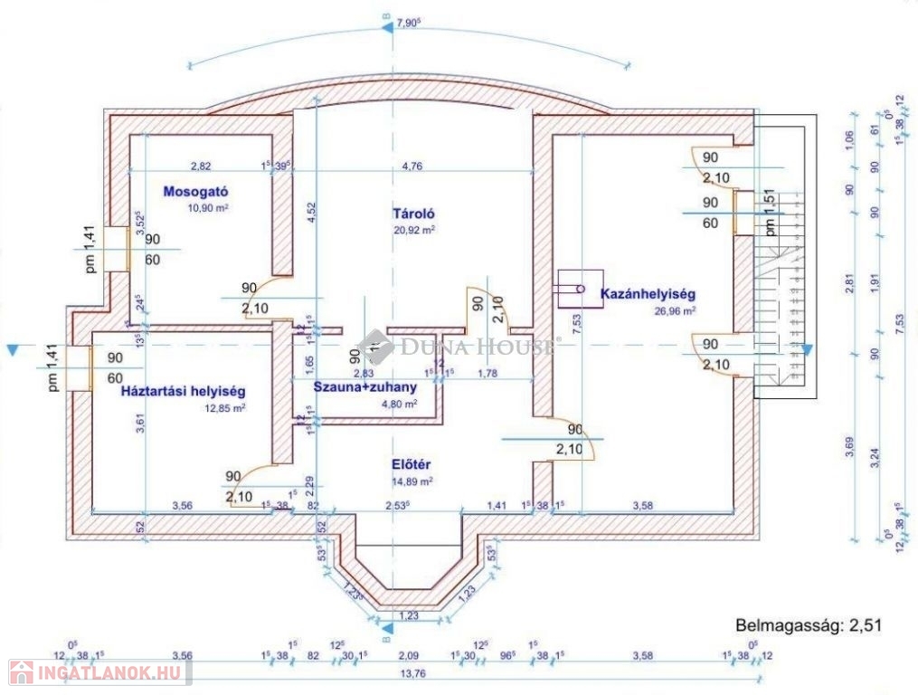A pince közel 91 m²-es területen szauna és kazánház mellett több szabadon alakítható helyiség áll rendelkezésre edzőteremnek, stúdiónak vagy vendégszintnek egyaránt alkalmas. A kertben két gépkocsi számára kialakított beálló biztosított, elektromos töltőponttal.