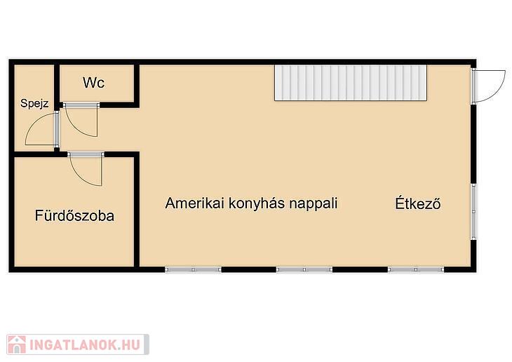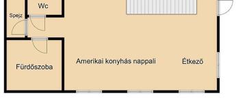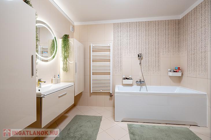 Az amerikai konyhás nappaliban és a vizes helyiségekben járólap míg a szobákban laminált parketta található.