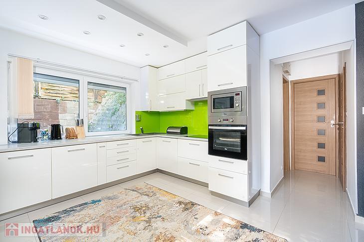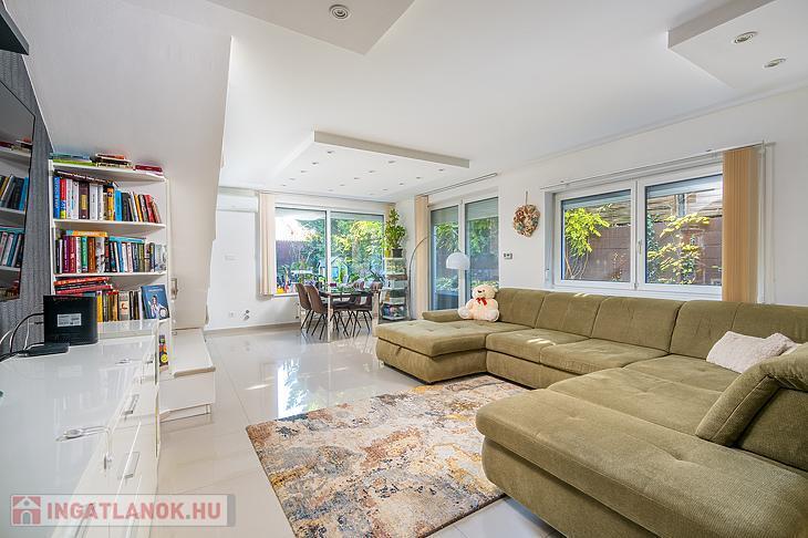 A lakáshoz tartozik fűtött garázs és kocsibeálló is.