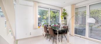 Csillaghegy DUNA FELŐLI oldalán csendes utcában ELADÓ egy 107 négyzetméter alapterületű belső kétszintes lakás 100 négyzetméteres KERTKAPCSOLATTAL!