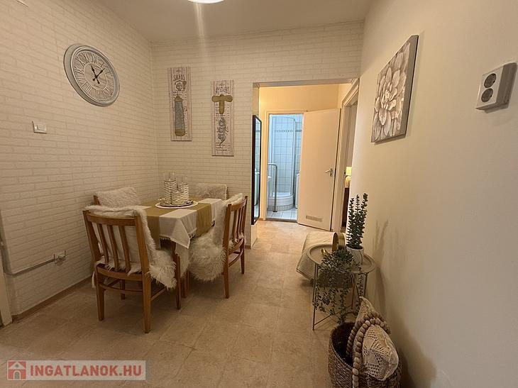 A fürdőszoba teljes felújításon esett át: új burkolatok és modern zuhanykabin került beépítésre, a mosógép jelenlegi kiállása is itt kapott helyet. Emellett a konyha is megújult, új gránit mosogatóval, új konyhabútorral és burkolattal várja az új tulajdonost.