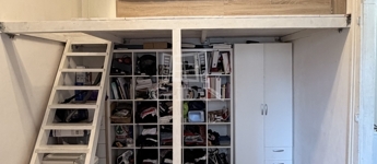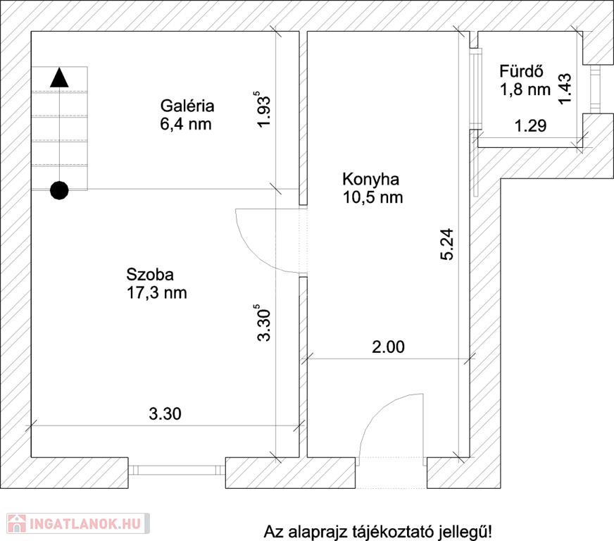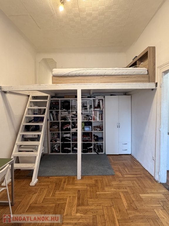 Az előszobából nyílik egy tágas szoba, ami galériázva van, a galérián bőven elfér egy francia ágy, kis polccal.