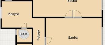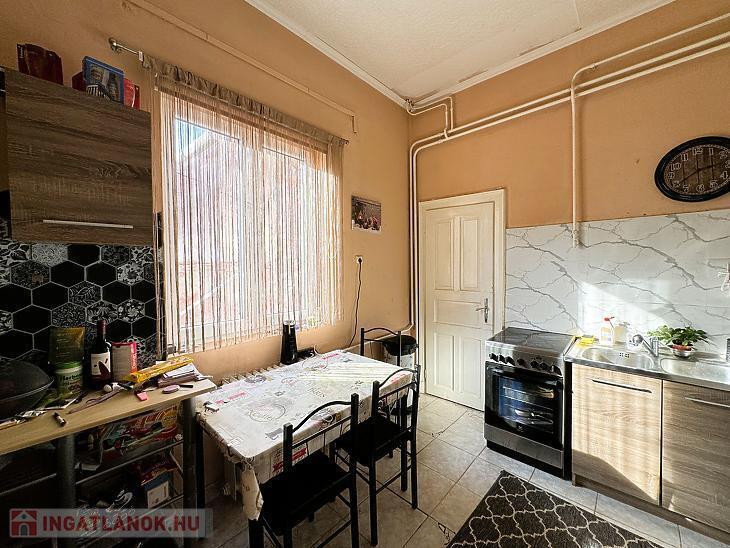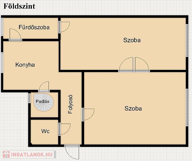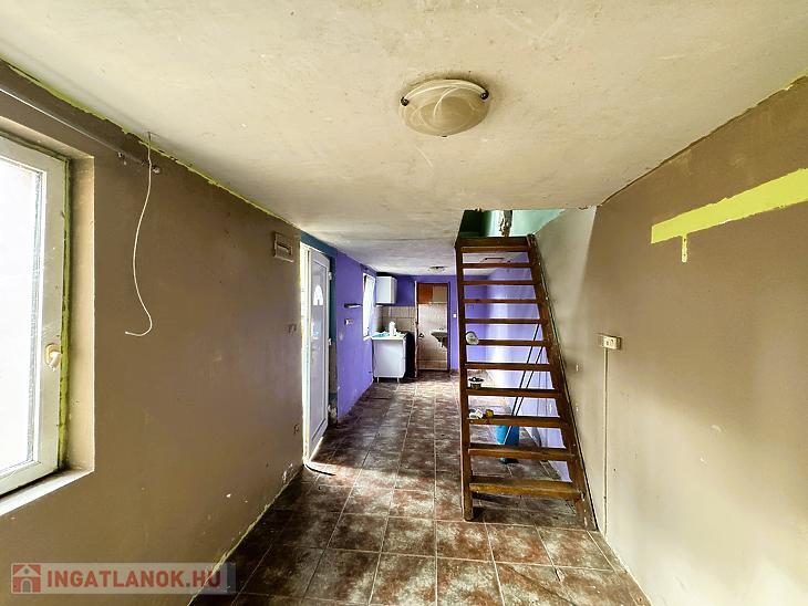 A földszinten található két szoba, konyha, fürdőszoba, külön WC, valamint padlásfeljáró. A helyiségek laminált padlóval és járólappal burkoltak.