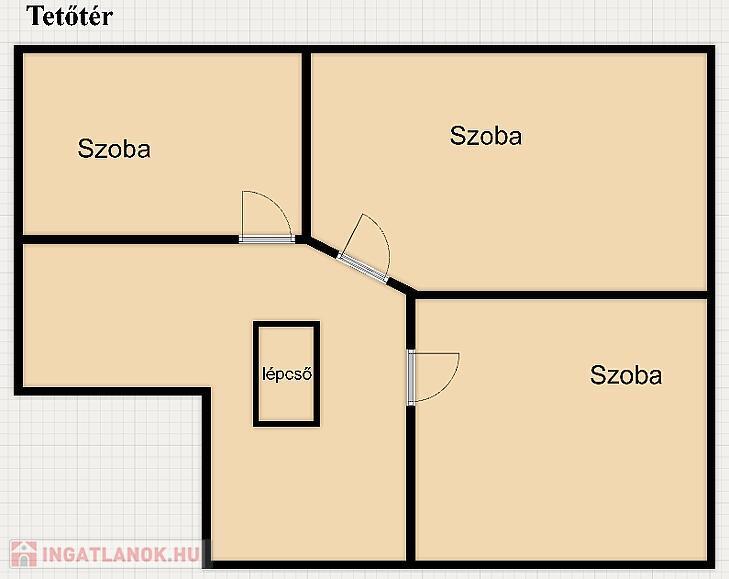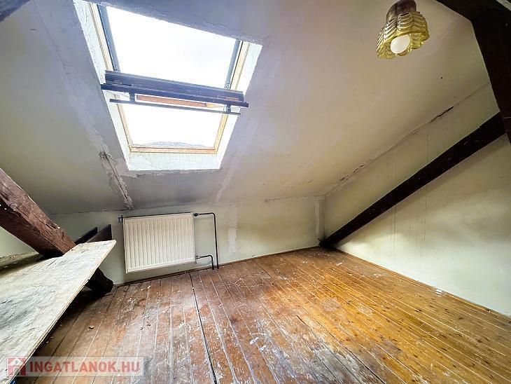A tetőtérben három különnyíló szoba kapott helyet, a fűtés itt is kialakításra került, a padlóburkolat fa parketta.