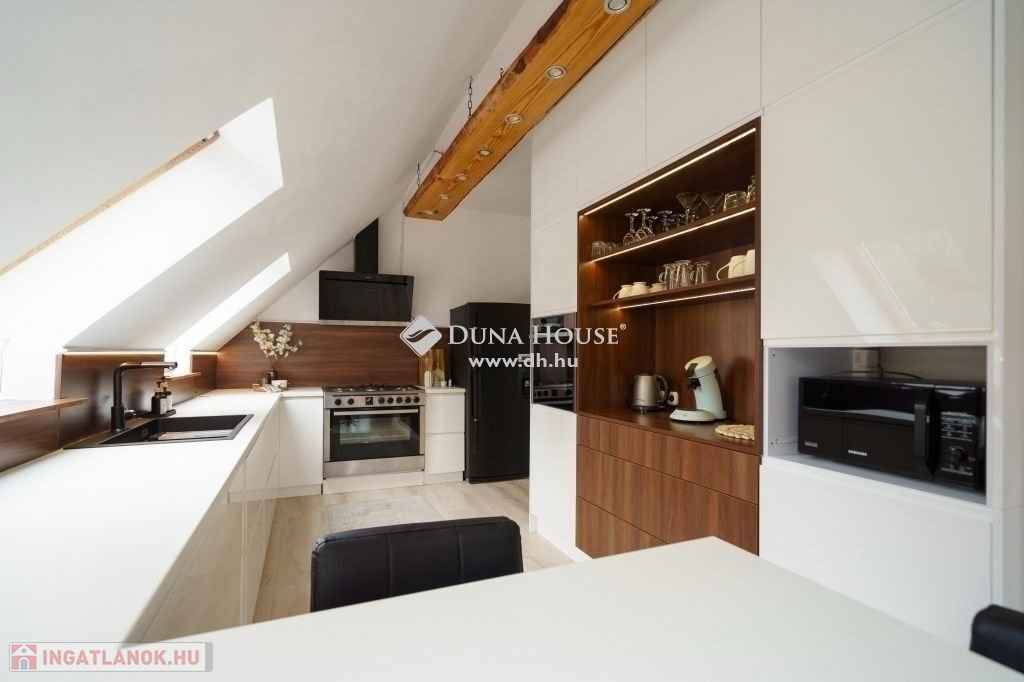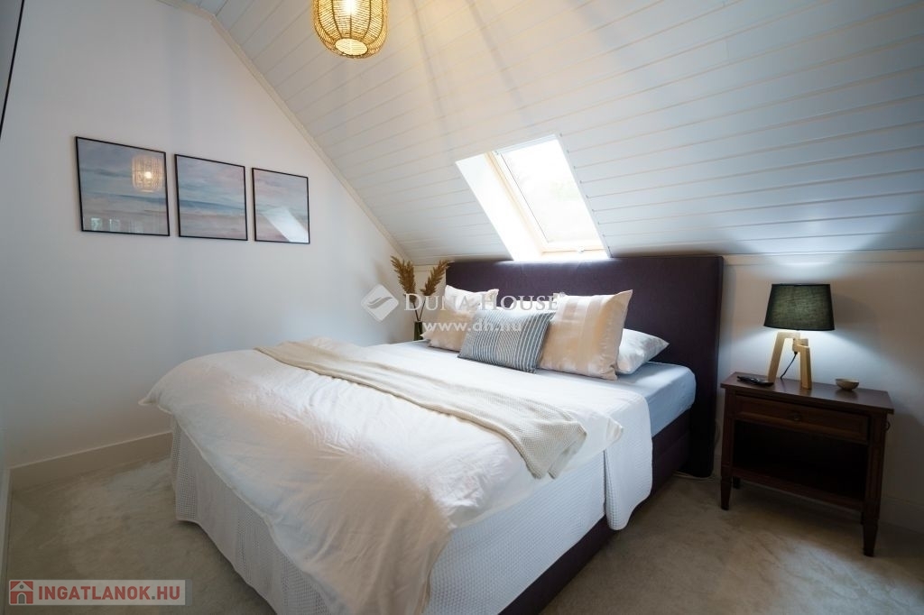 A ház minden részletében a kényelem és az elegancia találkozik. Az alsó szinten található amerikai konyhás nappali tágas, 46 m²-es terével és hatalmas ablakain keresztül lenyűgöző kilátást nyújt a Testvérhegyre. Innen léphetünk ki a 35 m²-es teraszra, ahol a reggeli kávézás és az esti naplemente alatt is gyönyörködhet a tájban.