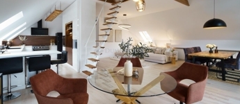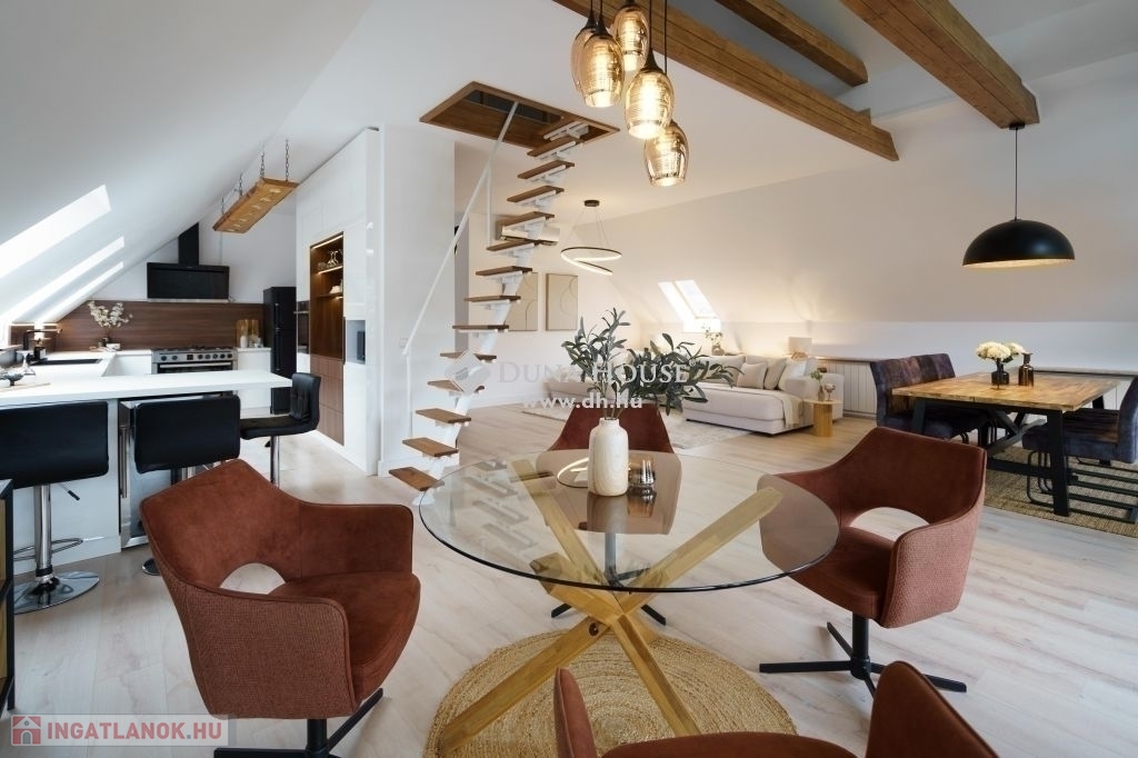A felső szinten található nappali, pedig talán még ennél is impozánsabb, a maga 70 négyzetméterével, illetve a legesztétikusabb építészeti és lakberendezői megoldásaival.