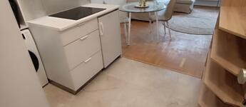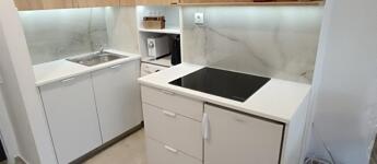 A lakásban amerikai konyha és zuhanyzós fürdőszoba került kialakításra.
