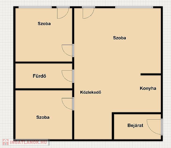 Eladó Óbudán egy 75 nm-es, 3 szobás tégla lakás erkélyekkel.